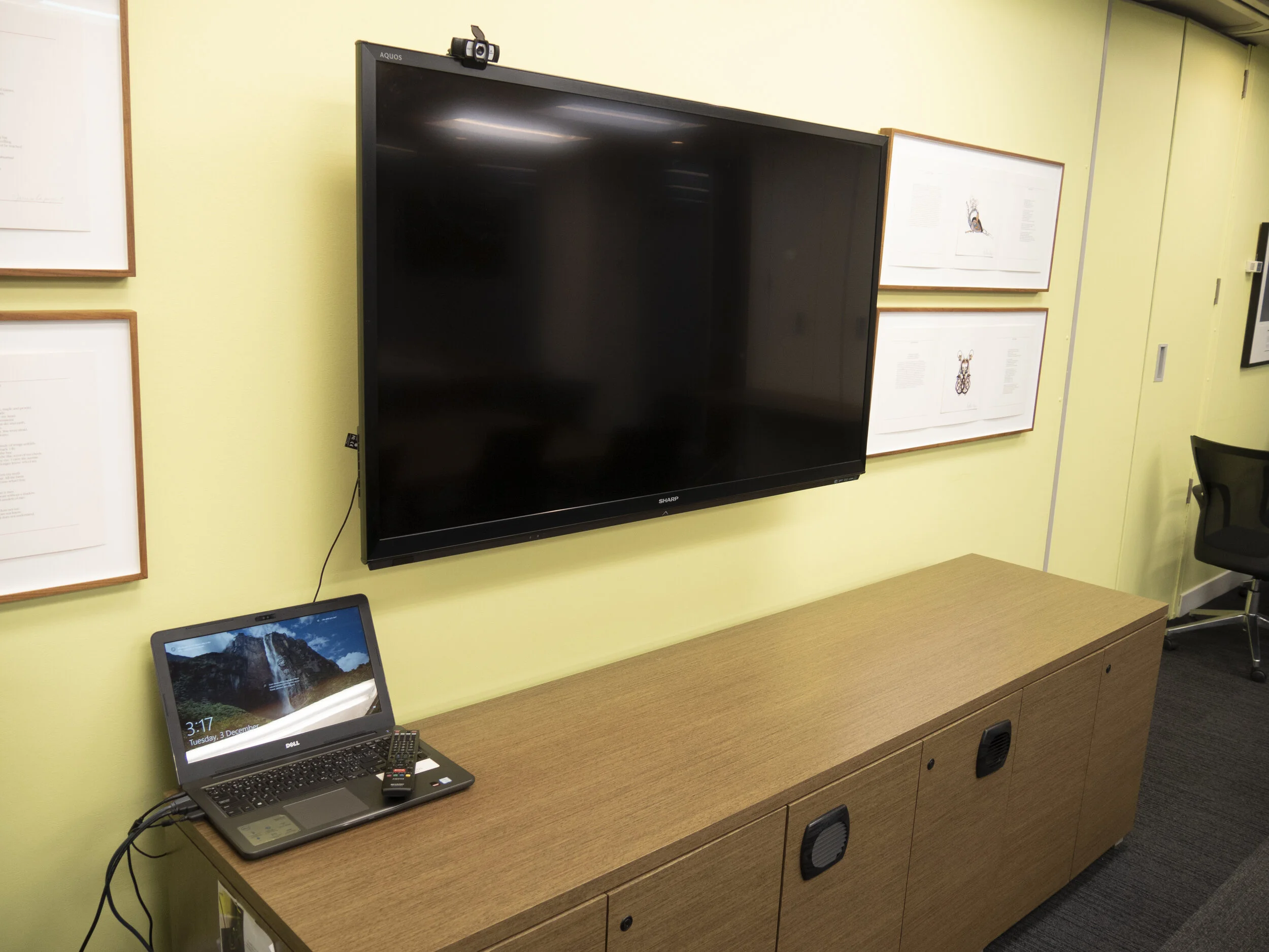 Television 2 (pictured above) and 3 (pictured left) can be turned on so attendees on any side of the table can follow the presentation.